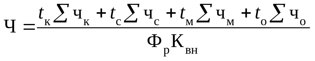 За цією формулою визначають окремо чисельність верстатників і слюсарів з ремонту.