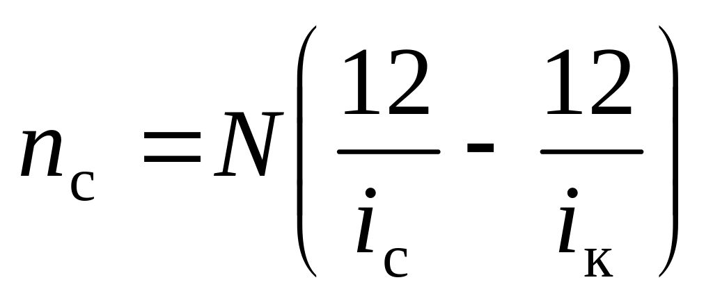 У разі великої кількості однотипного й одномодельного устаткування в цеху кількість капітальних, середніх та малих ремонтів і оглядів доцільно обчислювати за наведеними далі формулами, скориставшись позначеннями: N — число одиниць верстатів; ік, іс, ім, іог — періодичність відповідно капітального, середнього та малого ремонту й огляду, місяців.