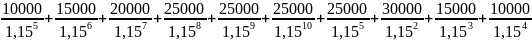 +200 / ( 1+0,15)⁵ - ( 100 /