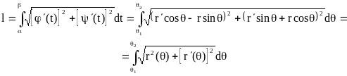 и длина l ее дуги вычисляется по формуле