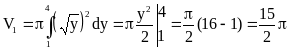 2. Если V1 - объем тела, образованного вращением параболы вокруг оси Оу, то (см. рис.2)