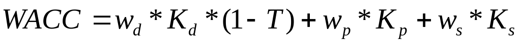 Сумма Wd , Wp, Ws всегда равна единице. Каждая из долей показывает, сколько копеек заемного капитал, привилегированных акций и собственного капитала входят в новый рубль, привлекаемый фирмой.