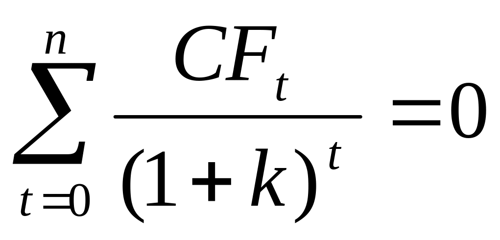 Внутренняя норма доходности – IRR. Данный критерий тесно связан с предыдущим. Этот показатель определяется как значение ставки дисконта К из уравнения: