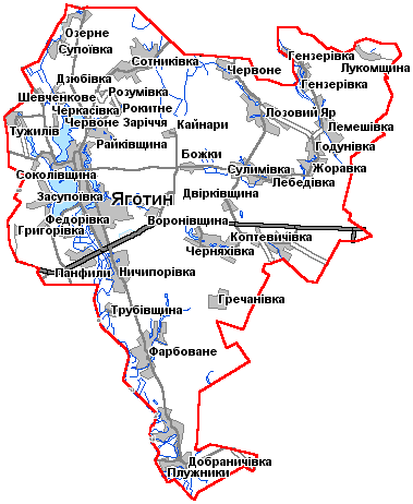 Адміністративно-територіальні обдиниці: У складі району виділена Яготинська міська рада та 18 сільських рад, що об’єднують 41 населений пункт та м. Яготин