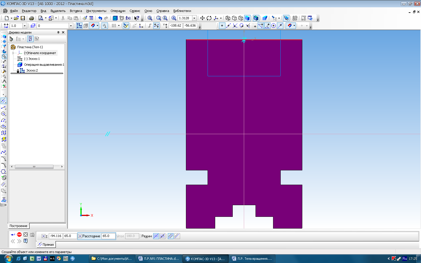 Центры оконных проемов необходимо нанести в соответствии с заданием, используя команду Вспомогательные прямые. Выбираем Параллельная прямая . В разделе Расстояние указываем необходимую величину. Нажимаем кнопку Создать объект . Курсор ставим в центр оконного проема, так, чтобы четверть оказалась снаружи здания. Таким образом, нанесем все оконные проемы.