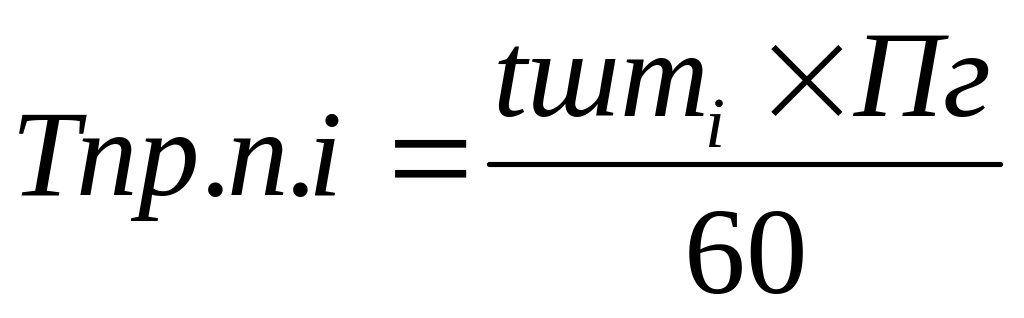 Тпр. п2 =4,5*182500/60 =13688мин/шт. Тпр.п5 =5,5*182500/60=16729мин/шт.