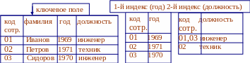 Одной из важнейших характеристик БД является обеспечиваемое в ней время поиска данных. В связи с этим в любой современной БД, наряду с основным массивом данных, хранится дополнительная информация, позволяющая ускорить поиск данных в БД. Эту информацию называют поисковой структурой, к которой относятся индексы и индексные файлы.