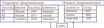 Пример. Реляционная БД из 2-х таблиц-отношений :