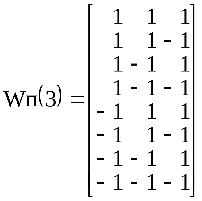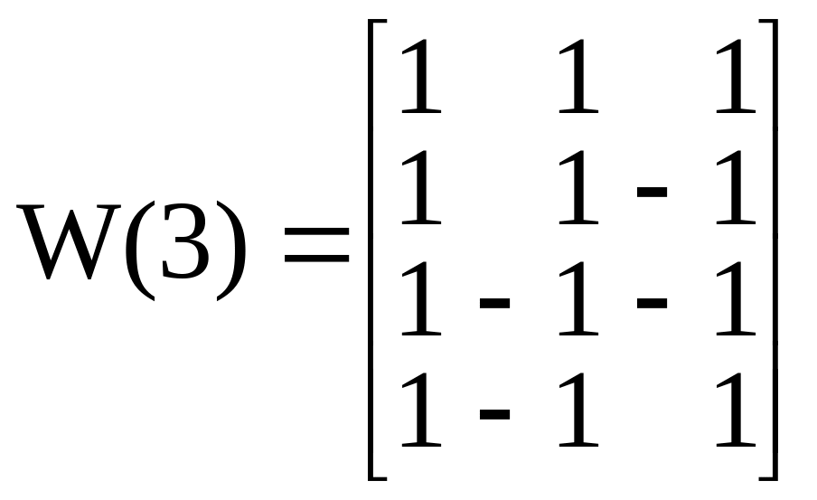 Упорядочив строки матрицы по коду Грея и исключив инверсные строки получим новую матрицу W(3):