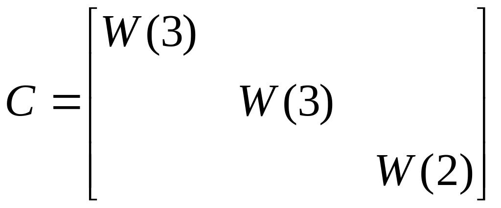 2.Формирование блочно-диагональной матрицы С. Для каждой из подматриц размером N*m формируем матрицы W(m) (W(l) - для остаточного блока) согласно определению размером 2m-1*m. Из сформированных матриц образуем блочно диагональную матрицу С: