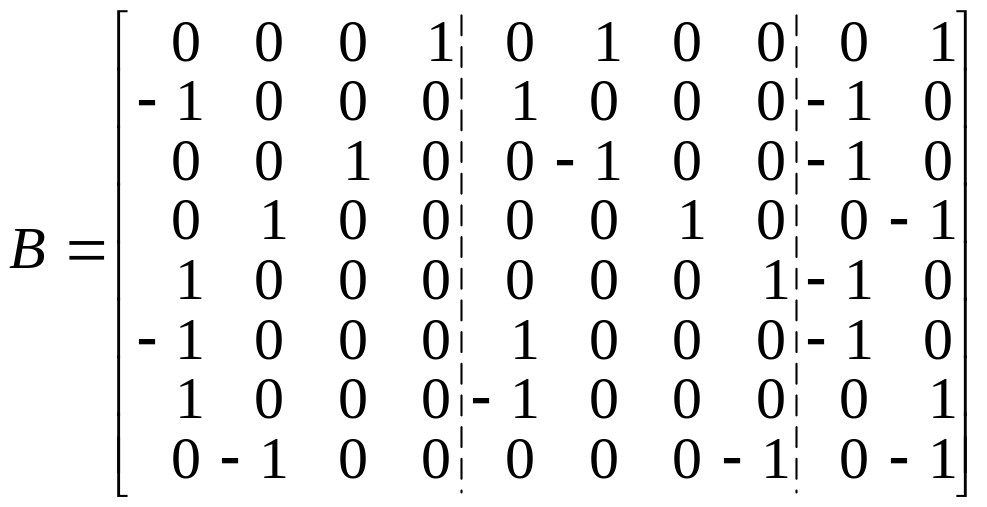 2. Формирование блочно-диагональной матрицы В*. Для каждой из подматриц Bi формируем вспомогательную матрицу Vi путем вычеркивания повторяющихся и инверсных строк из подматриц. На основе вспомогательных матриц Vi строим блочно диагональную матрицу: