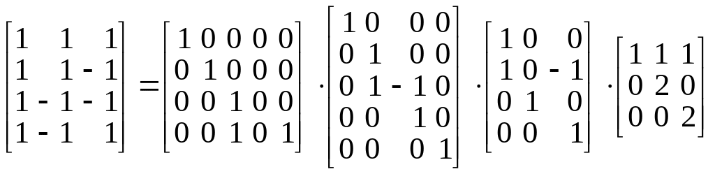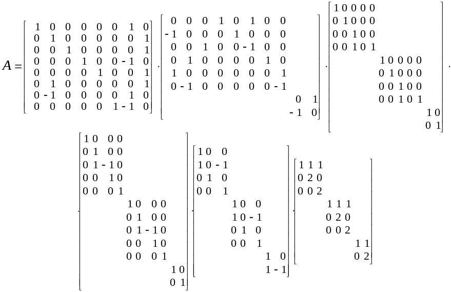 Любую матрицу A размером M x N, состоящую из 1,-1,0 можно представить в виде произведения