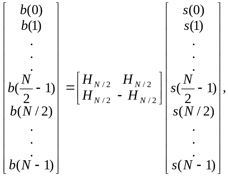 Используя матрицу Адамара порядка N, можно записать преобразование в матричной форме: