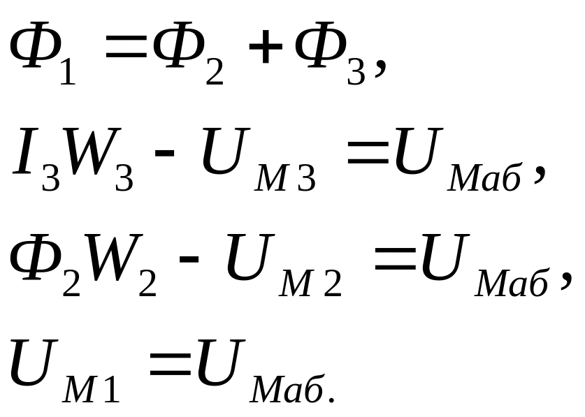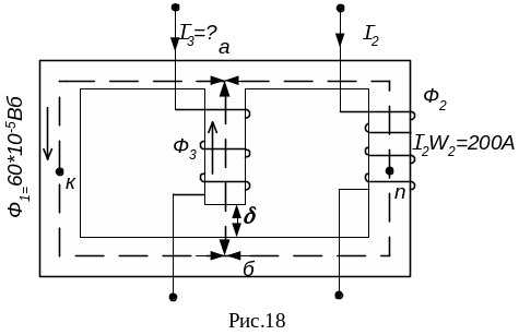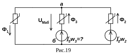1. Для схемы замещения данной магнитной цепи (рис.19) составим уравне-ния по 1 и 2 законам Кирхгофа