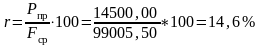 Рентабельность основных средств характеризует среднюю норму прибыли, получаемой от вложений в основной капитал предприятия: