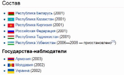 еще 8 стран — Азербайджан, Армения, Казахстан, Киргизия, Молдавия,Таджикистан, Туркменистан и Узбекистан. В декабре 1993 г. к Содружеству присоединилась Грузия.