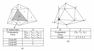 Рисунок 5.10 – Моделі зберігання TIN: а) за трикутниками; б) за крапками