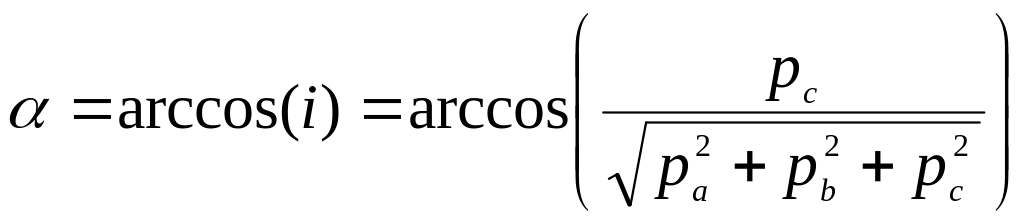 Тепер обчислимо направляючі косинуси і проекцію нормалі P до горизонтальної площини: