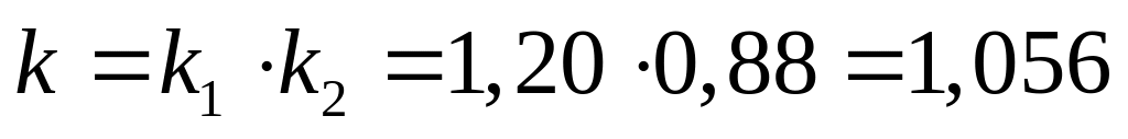 де α=0,023L+5,8>6,5; k=k1.k2; а=0,9– відстань (шпація) між ребрами жорсткості , м; ΔS =2,4– запас на знос та корозію, мм; k1 та k2 визначаються за таблицями [6].