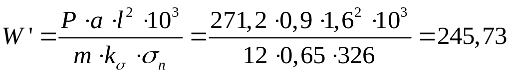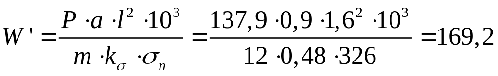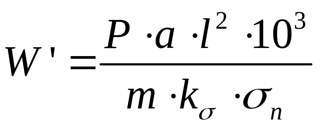 де W’ – момент опору балки без урахування запасу на знос та корозію, см3; Р – розрахунковий тиск на рівні середини вертикального кіля і стрингера, кПа; a=0,8 – відстань (шпація) між балками, які розглядаються, м; l =1,6– прогін балки, м; m=12, kσ – коефіцієнти згинального моменту і допустимих напружень, які визначаються у відповідних Правилах; ωk – поправка на знос та корозію.