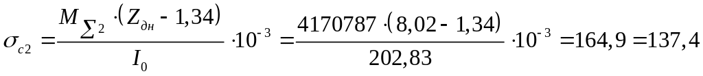 де σс – стискальні напруження, МПа; σкр – критичні напруження, МПа; k=1,0 – для обшивки другого дна: