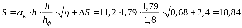 де αk=0,03L+8,3<11,2; k=k1.k2; hф=1,8 м – фактична висота вертикального кіля; h=1,79 м – розрахована висота вертикального кіля; ΔS =2,4 мм– запас на знос та корозію.
