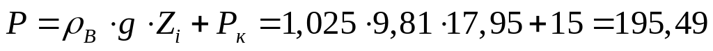 при Zi =D– hвк /2= 18,85– 1,8/2 = 17,95 м.
