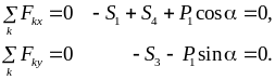 Составим уравнения равновесия системы сил, действующих на ферму: