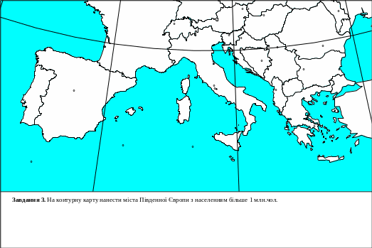 Демографічна ситуація _________________ ______________________________________ Національний склад ____________________ ______________________________________ Рівень урбанізації ______________________ ______________________________________ Найбільші міста _______________________ __________________________________________________________________________________________________________________ |