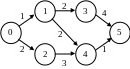 1), (0, 2), (1, 3), (1, 4), (2, 4), (3, 5), (4, 5)}. Числа