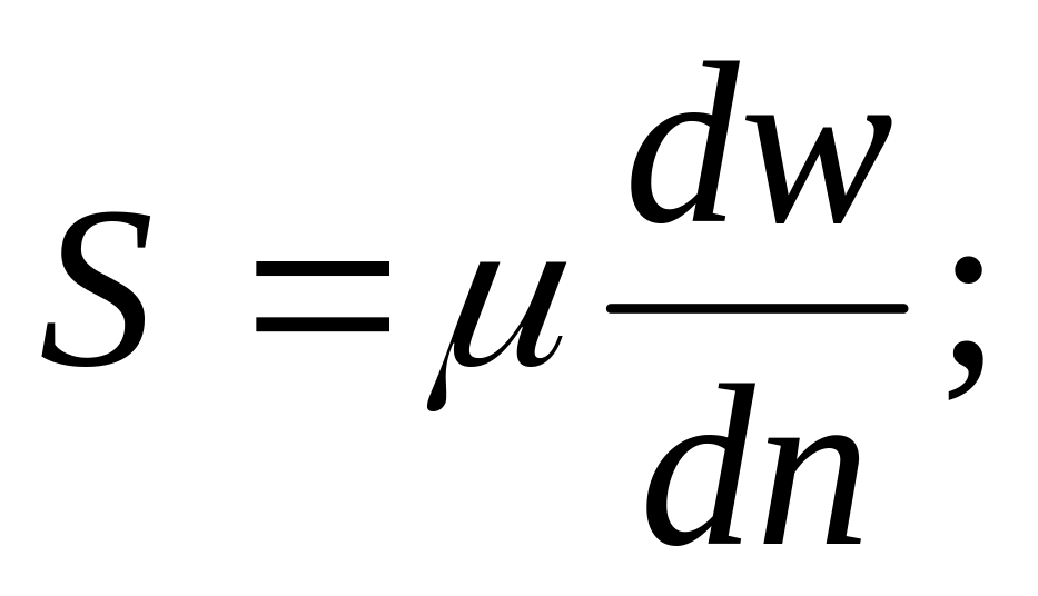 Величина силы внутреннего трения S между слоями, отнесенная к единице поверхности, согласно закону Ньютона пропорциональна градиенту скорости dw/dn по нормали к направлению движения потока:
