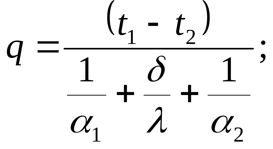 В случае передачи теплоты через многослойную плоскую стенку (n слоев) в уравнениях (9.4) и (9.5) в знаменателе следует подставить суммарное термическое сопротивление всех ее слоев: