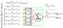 (Ниже на рисунке приведена схема двумерной многоканальной фильтрации с нечетным числом каналов на базе обработки, равным M = 2n+1, результат обработки относится к х-координате центральной трассы базы.)