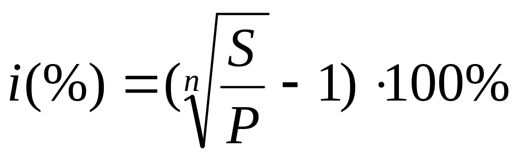 i(%) – процентная ставка, показывает, сколько денежных единиц должен заплатить заемщик за пользование 100 единицами капитала в определенном периоде времени.