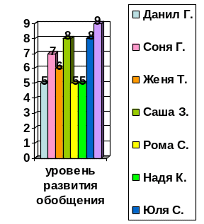 После проведения методики «Четвертый лишний», целью которой было выявление уровня развития обобщения (один из видов мышления).