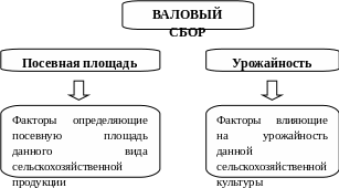 Дальнейший этап анализа динамики валового сбора продукции растениеводства предполагает выявление факторов которые определяют изменения произошедшие в величинах: площадь посева и урожайность. Все эти факторы влияют на валовый сбор стохастически, поэтому проведение данного этапа анализа предполагает применение приемов стохастического факторного анализа (корреляционно-регрессионный анализ, дисперсионный анализ).