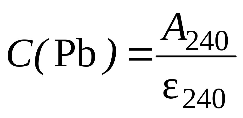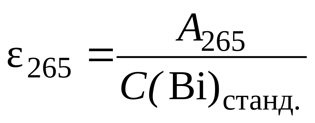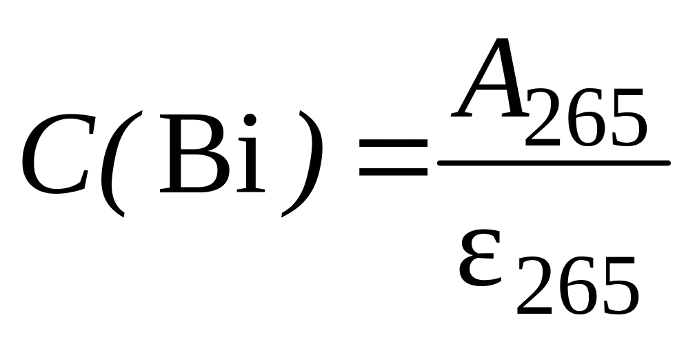 Зная 265 и 240 и измерив оптическую плотность исследуемого раствора при =265 и 240 нм, определяют концентрацию висмута и свинца в пробе по формулам: