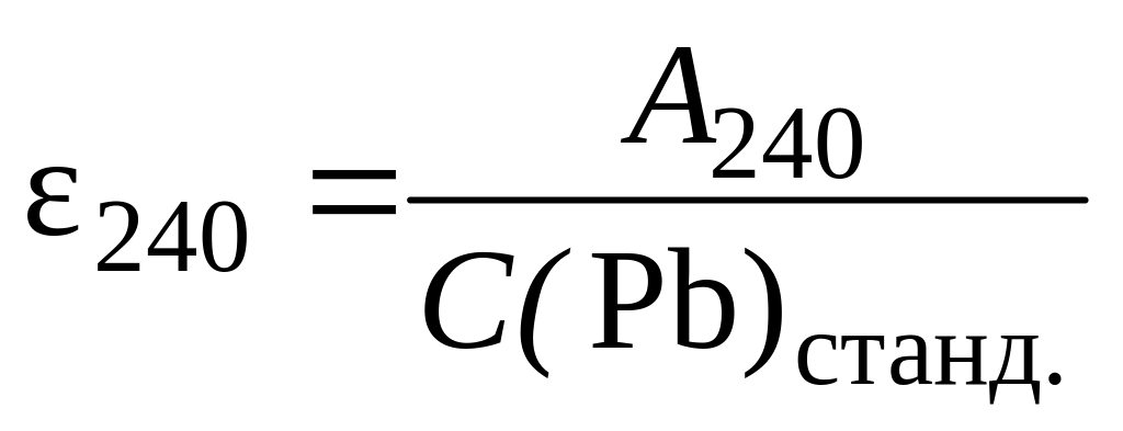 В случае единичного определения висмута и свинца можно, измерив оптическую плотность одного эталона при =265 и 240 нм, рассчитать коэффициент поглощения, например: