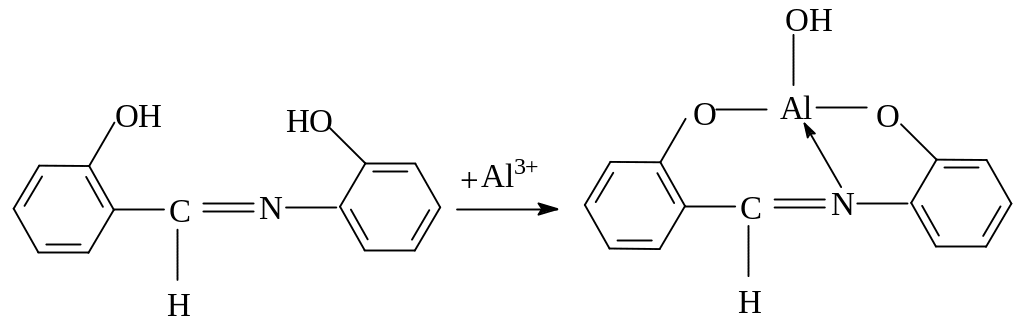 В основе флуоресцентного определения алюминия лежит реакция с салициаль-о-аминофенолом по схеме: