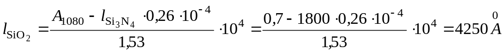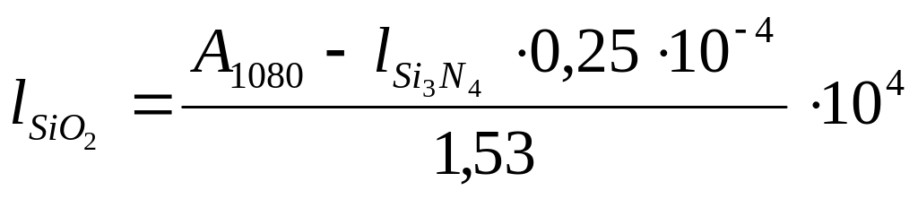 Толщину слоя оксида кремния вычисляют по разности суммарной оптической плотности при 1080 см-1 и рассчитанной оптической плотности для Si3N4 при 1080 см-1:
