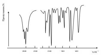 Для расчета результатов анализа с помощью спектра получают зависимость процента поглощения Т от волнового числа (см-1) для эталонных и анализируемых образцов диэлектриков.