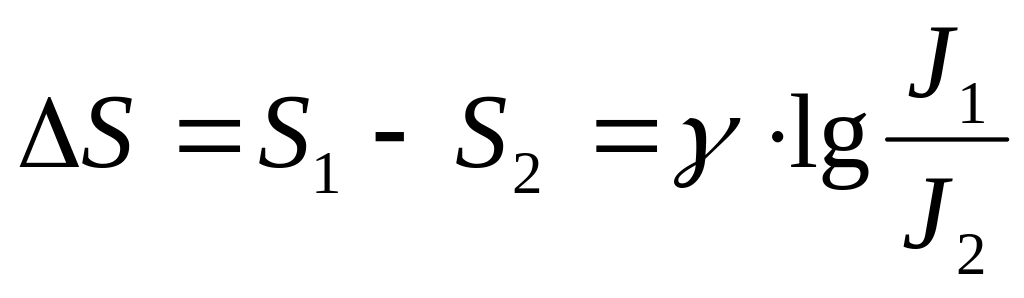 Для прямолинейного участка кривой ВС связь между интенсивностью света J и почернением S может быть выражена формулой: