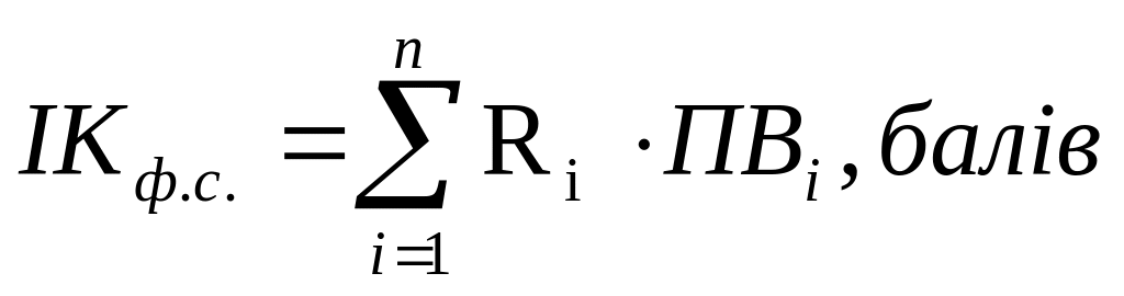 ІКф.с. = (1*0,06) + (1*0,05) + (0*0,03) + (7*0,07) + (0*0,07) + (0*0,07) + +(5*0,04) + (0*0,04) + (0*0,03) + (2*0,03) + (7*0,08) + (6*0,08) + (10*0,08) + +(9*0,04) + (1*0,08) + (1*0,05) + (1*0,05) + (1*0,05) = =0,06+0,05+0+0,49+0+0+0,2+0+0+0,06+0,56+0,48+0,8+0,36+0,08+0,05+0,05+0,05=3,29балів.