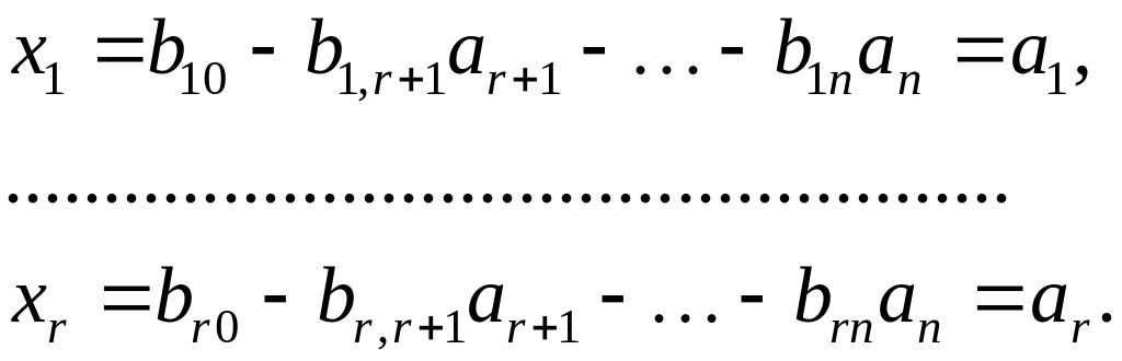 Если СЛАУ (1.6) совместна, из табл. 1.7 получаем её общее решение: