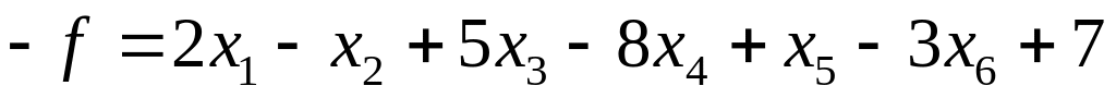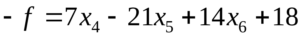 Описанные преобразования системы ограничений в целевой функции удобнее проводить одновременно, приписав к жордановой таблице снизу строку для целевой функции ( - строку). В процессе жордановых исключений эту строку не следует выбирать разрешающей, но преобразовывать ее элементы нужно по обычным правилам. В результате целевая функция, как и базисные переменные, окажется выраженной через свободные переменные (табл. 2.10 – 2.13).