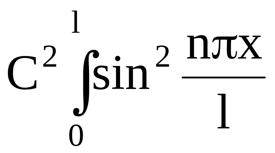 Коэффициенты С1 и С2 находим из граничных условий: (0)=0; (l)=0. Из первого граничного условия получаем С1 = -С2 и (х)=2i С1 sin kx; из второго граничного условия имеем sinkl=0, kl=n, где n=1,2,... Значения n=0 отбрасываем, так как при этом значении (х) тождественно равно нулю во всех точках внутри ямы, что соответствует отсутствию такого состояния.