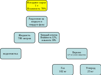 Рассмотрим энергетические перспективы при применении технологии пиролиза помета. Выберем следующую технологическую схему: