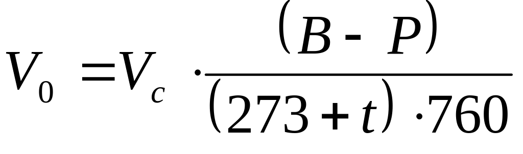 При отборе пробы вакуумным способом приведение объема воздуха к нормальным условиям производят по формуле