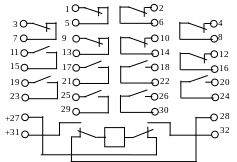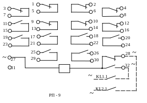 Реле РП-8 имеет семь замыкающих и семь размыкающих контактов.