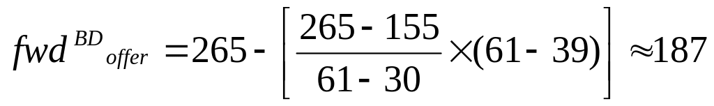 Дата выполнения данного контракта является нестандартной, ближайшие стандартные даты: 25 сентября (на эту дату котируется одномесячный форвардный курс; контрактный период - 31 день) и 25 октября (двухмесячный форвардный курс; контрактный период – 61 день). Период между датой спот (25.08) и датой выполнения контракта на ломаную дату (03.10) составляет 39 дней.